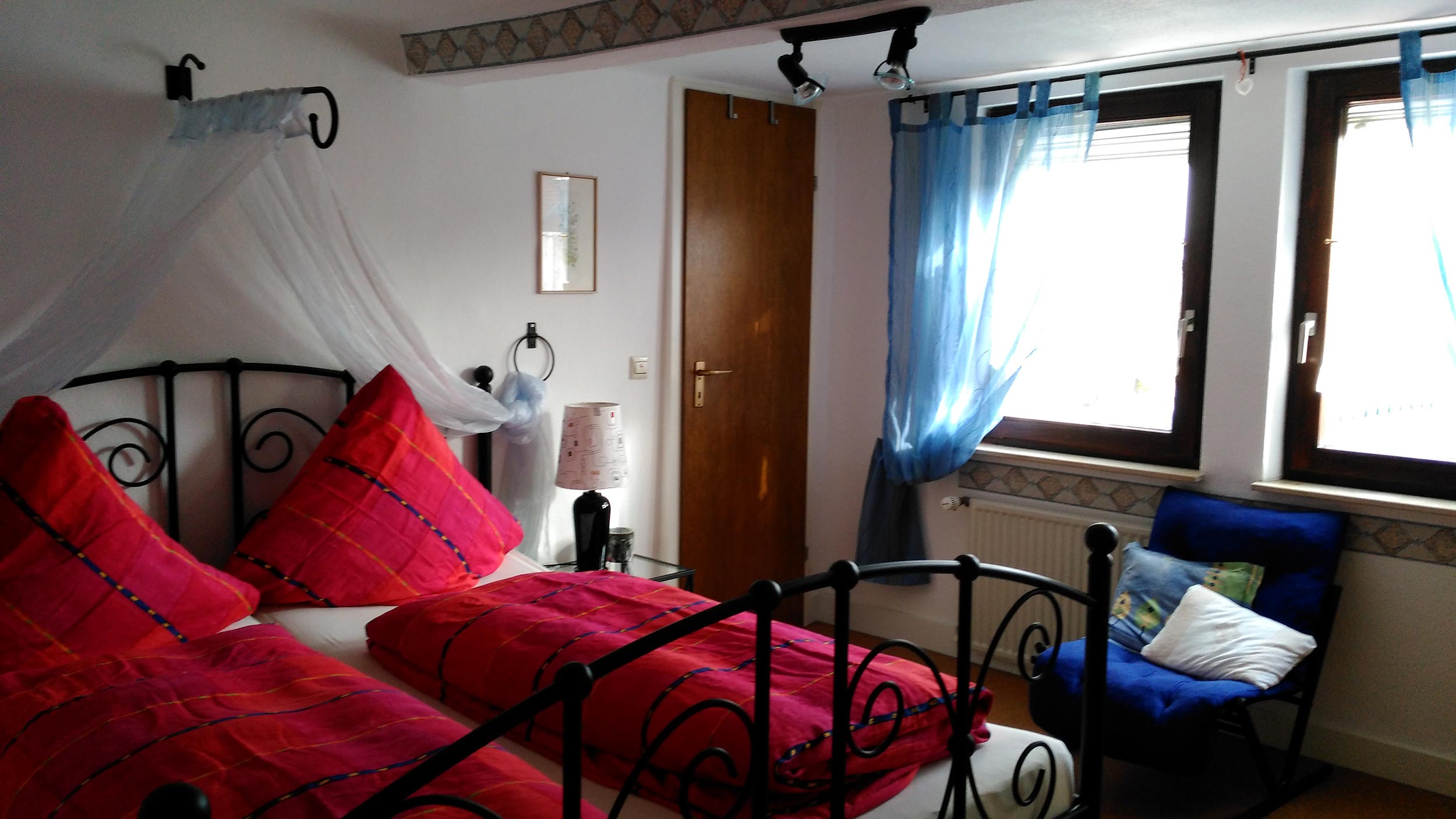 Unser Gästehaus verfügt über zwei Doppelzimmer, jeweils mit WC und Dusche. Ein Fön steht selbstverständlich zur Verfügung und auf Anfrage stellen wir gerne ein Baby-Reisebett bereit (5 € Aufpreis). Sie haben die Wahl zwischen dem Blauen Zimmer und dem Fachwerkzimmer. Bettwäsche und Handtücher sind im Preis inbegriffen.